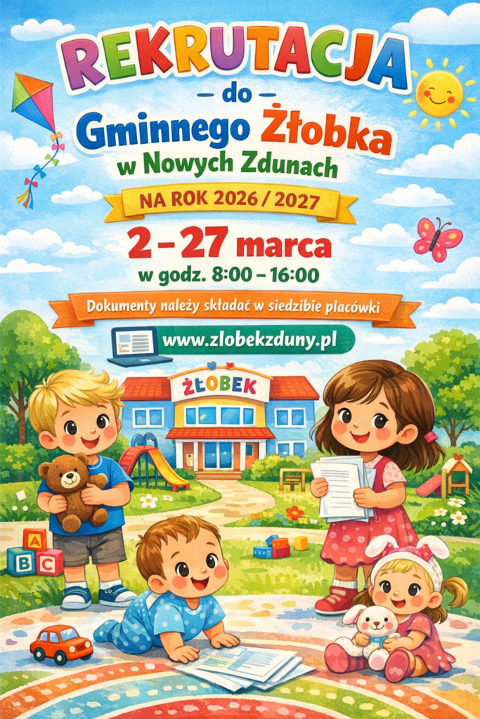 Dyrektor Gminnego Żłobka w Nowych Zdunach informuje ,że rozpoczyna się rekrutacja na rok szkolny 2026/2027.