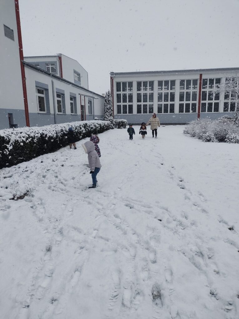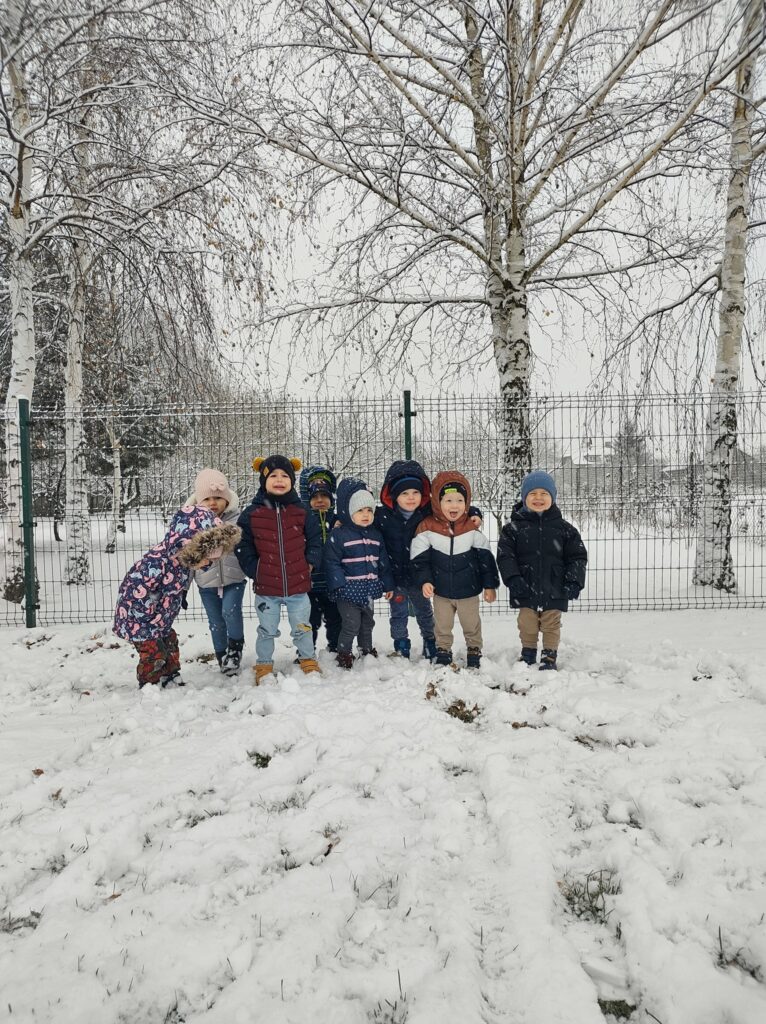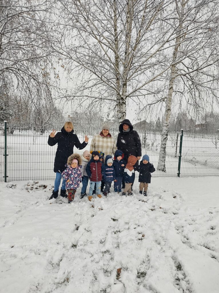 Spacerowaliśmy po najbliższej okolicy żłobka, nawet próbowaliśmy ulepić bałwana. Nie obyło się również bez bitwy na śnieżki.