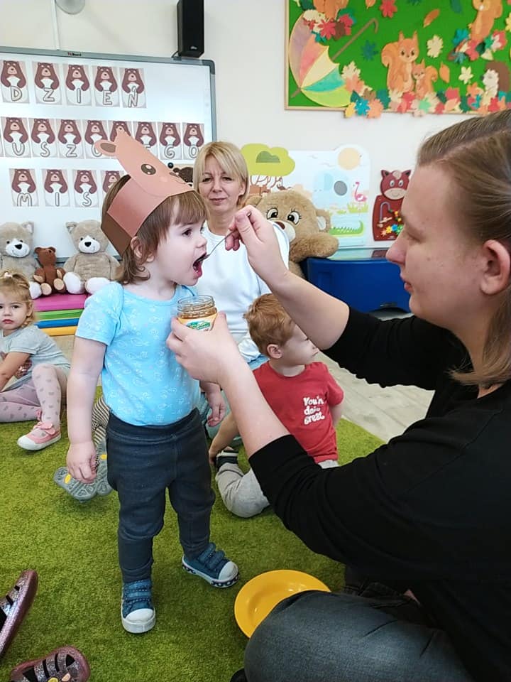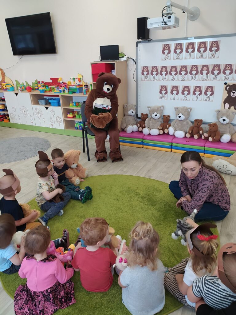 dzieci zaśpiewały Misiowi piosenkę oraz wręczyły mu własnoręcznie wykonaną laurkę. Na zakończenie spotkania Miś Czytuś obdarował dzieci słodką przekąską.
